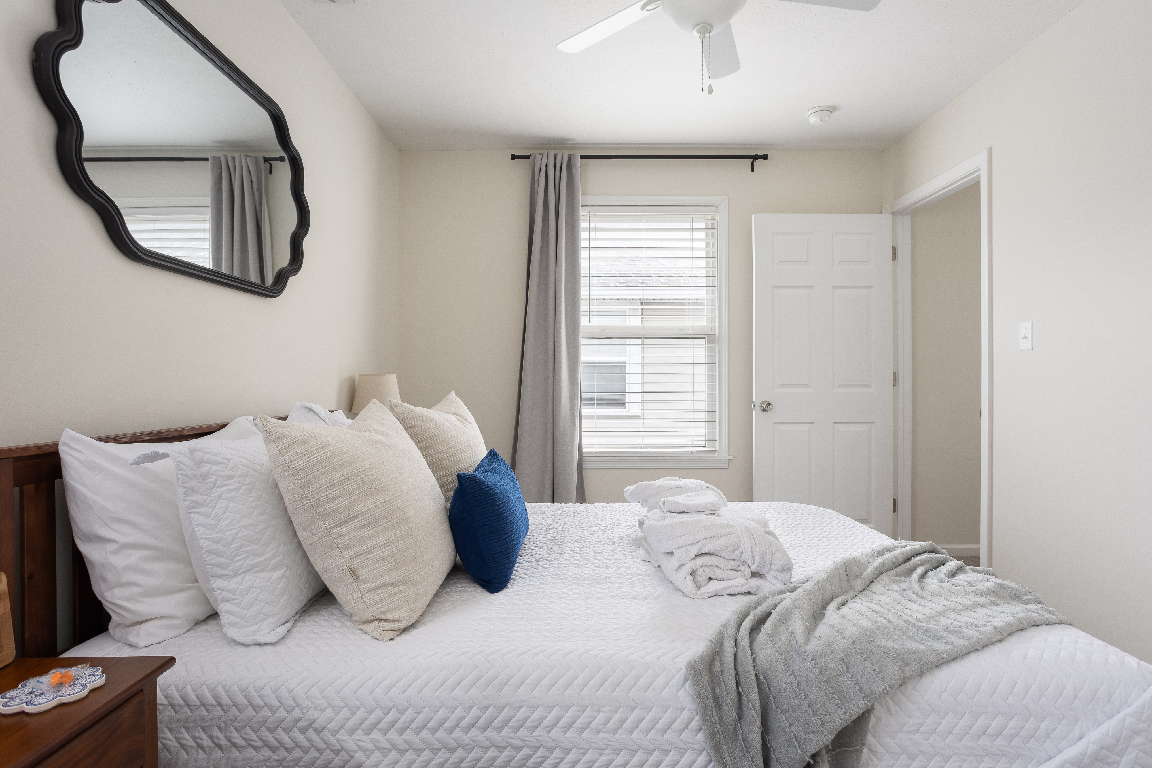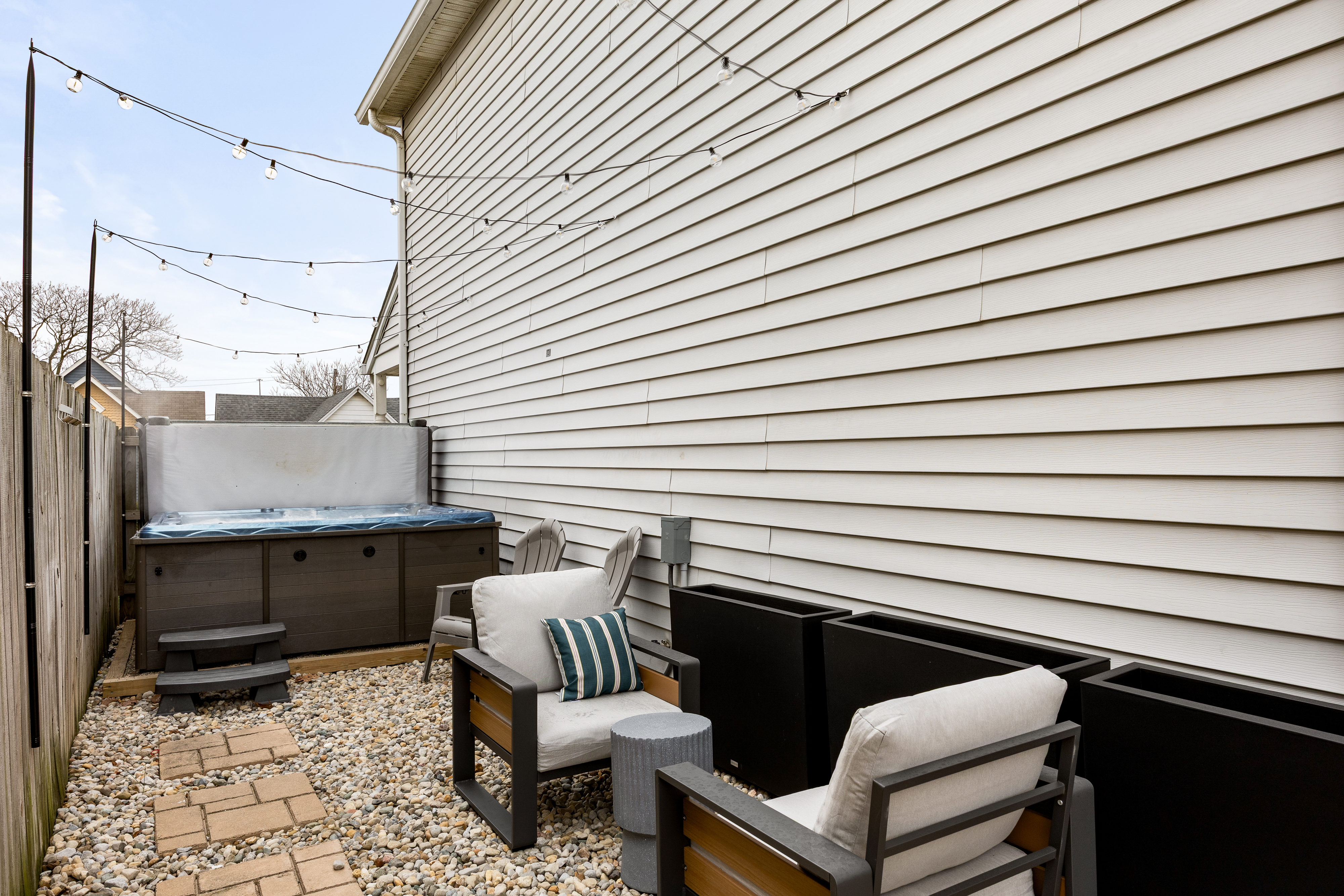 Designed for comfort, connection, and convenience, Capitol House by Lazy Sunday Rentals is a thoughtfully curated retreat in the heart of downtown Indianapolis—perfect for work trips, game days, and city getaways. 📍 Prime Downtown Location • Walk 10–15 minutes to the Indiana Convention Center, Lucas Oil Stadium, and Gainbridge Fieldhouse • Close to Indy’s best dining, nightlife, and cultural attractions • Easy highway access for quick arrivals and departures 🛏 Sleeping Arrangements (Sleeps up to 8) • 3 cozy bedrooms, each with a queen-sized bed (sleeps 6) • Bonus twin mattress with bedding available for extra sleeping flexibility (sleeps 1) • Comfortable couch with provided bedding (sleeps 1) • Lazy Sunday sleep essentials in every bedroom: • Sound machines & fans • Earplugs (great for a downtown location) • Bedside charging stations for phones, watches & AirPods • Blackout curtains for deeper, more restful sleep ☕ Fully Stocked Kitchen + Signature Lazy Sunday Coffee Bar • Fully equipped kitchen with everything you need to cook & dine in • Dedicated coffee bar featuring: • Local coffee beans • Burr grinder • French press, drip coffee maker & Keurig • Tea, sweeteners, creamer & more • A favorite Lazy Sunday detail guests consistently rave about 💻 Work & Family Ready • Dedicated workspace with ergonomic standing desk and high-speed Wi-Fi • Ideal for Zoom calls, remote work, and extended stays • Family-friendly amenities: • pack ’n play & high chair • Children’s dinnerware • Books and toys for little ones 🛁 Hotel-Style Bathrooms • Shampoo, conditioner, body wash & lotion provided • Plush towels, robes & hair dryer included • Clean, modern, spa-inspired feel throughout 🎬 Designed for Downtime • 2 smart TVs with streaming apps • Books, board games & puzzles for cozy nights in • Comfortable living spaces to unwind after a full day in the city 🔥 Private Hot Tub Retreat • Fully fenced side yard with private hot tub • String lights for evening soaks • Plush robes & beach towels provided • A true Lazy Sunday-style reset after exploring Indy 🐾 Pup-Friendly Perks • Dogs welcome! • Fully fenced side yard for safe play • Walkable neighborhood for easy strolls 🧺 Laundry Convenience • Washer & dryer located on the second floor near all bedrooms • Laundry detergent provided for your stay You’ll have full, private access to the entire home and fenced side yard. Enjoy a smooth, stress-free arrival with easy keyless entry, no keys to pick up or return. Parking is simple and convenient: • Free street parking available directly in front of the home • Private off-street parking for up to two vehicles located behind the house We love hearing from our guests! As locals living just 10 minutes away, we’re happy to share personalized recommendations for restaurants, coffee, shopping, and things to do in downtown Indianapolis. Have a question or need anything during your stay? Send us a message anytime through Airbnb—we’re responsive, helpful, and here to make your stay easy and relaxing 😊 Pull up, park, and settle in, your Lazy Sunday stay starts right away 🎉