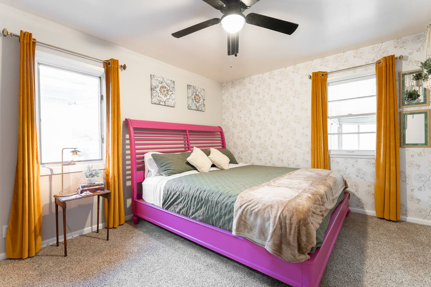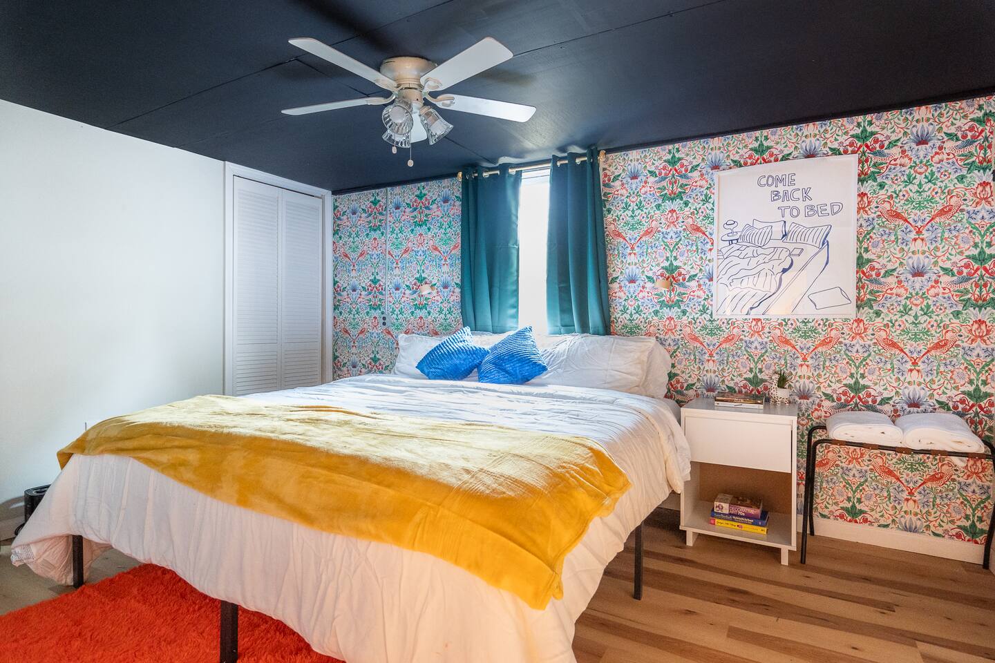 Vibrant style meets ultimate comfort. This design-forward home blends bold color, cozy textures, and thoughtful amenities. Perfect for large groups, families, or extended stays seeking space and personality. 🛏 Sleep & Comfort (Sleeps 12) • 5 King beds + 1 Full + pull-out sofa • Foam toppers for hotel-quality rest • Fans and ear plugs provided for light sleepers 🏠 Space to Gather (or Spread Out) • Two living rooms + two full kitchens—ideal for group stays • Fully stocked kitchens with cookware and essentials • Local coffee bar with beans, grinder, French press & drip coffee 🚗 Easy Parking • 2-car garage included • Private driveway parking for multiple vehicles • Ideal for group travel, families, and work trips with multiple cars 🚿 Everyday Essentials • Bathrooms stocked with shampoo, conditioner, body wash, lotion • Fresh, fluffy towels provided 🎲 Entertainment & Relaxation • Home library throughout the space • Board games and puzzles for all ages 📍 Location & Nearby Attractions This home offers quick access to Indianapolis and surrounding areas, without the congestion of an urban stay. • Downtown Indianapolis / Lucas Oil Stadium / Gainbridge Fieldhouse / Indiana Convention Center – ~10 minutes • Indianapolis International Airport – ~15 minutes • Fountain Square – ~10 minutes • Bottleworks District – ~12 minutes • Indianapolis Motor Speedway – ~20 minutes • Children’s Museum of Indianapolis – ~18 minutes Easy highway access puts you close to sports complexes, hospitals, and suburbs across Central Indiana. Your Lazy Sunday retreat is ready. Settle in, slow down, and stay awhile ☕ Guests have full, private access to the entire home, including the main level and finished basement. Enjoy the front and back porches, a wooded backyard, and private parking with a 2-car garage and driveway. You’ll check in easily and settle in at your own pace. No shared spaces, no interruptions, just room to relax. We’re local and just minutes away, so we know Indy well and love sharing restaurant, shopping, and activity recommendations to help you make the most of your stay. We’re available via Airbnb messaging daily from 7am–10pm and aim to respond quickly. For urgent issues (lockouts, plumbing, HVAC, etc.), please call the Host phone number listed. For health or safety emergencies, call 911. We give you space to enjoy your stay. We’re always close by when you need us. ☕