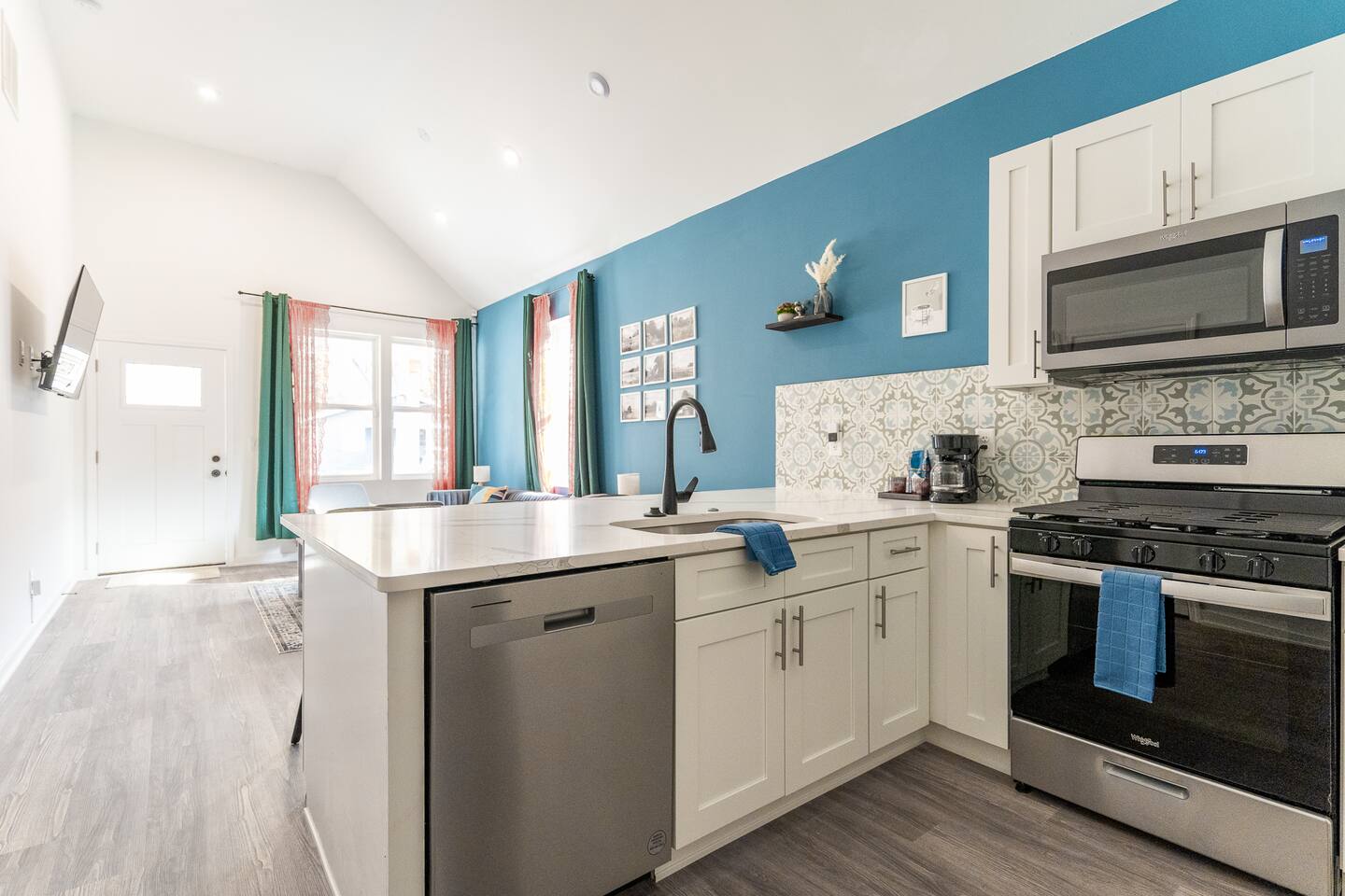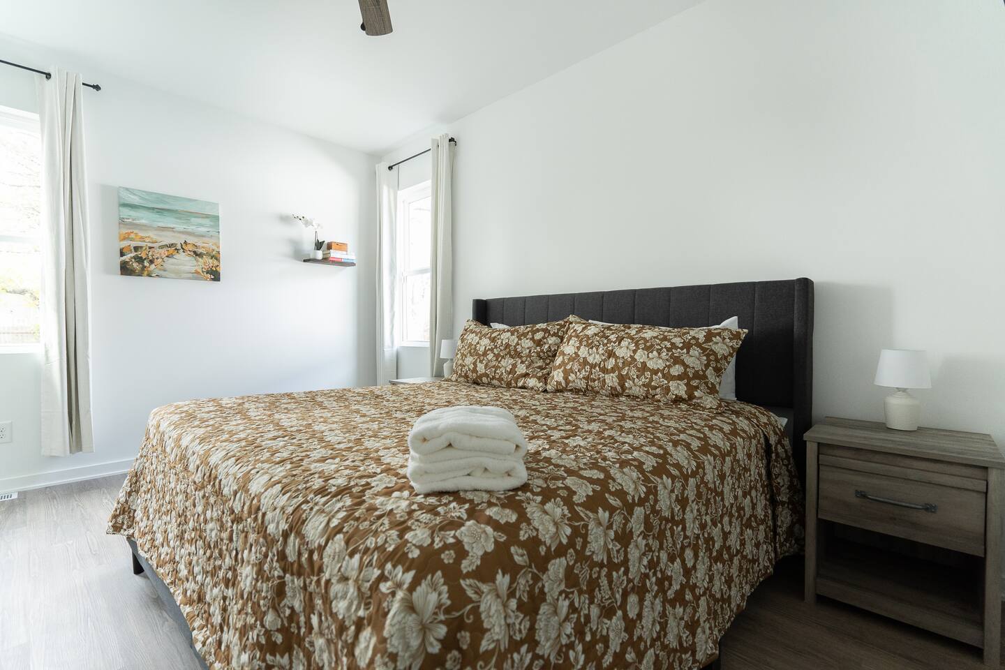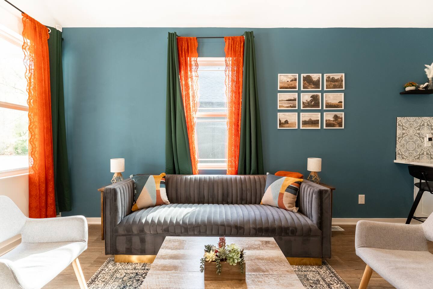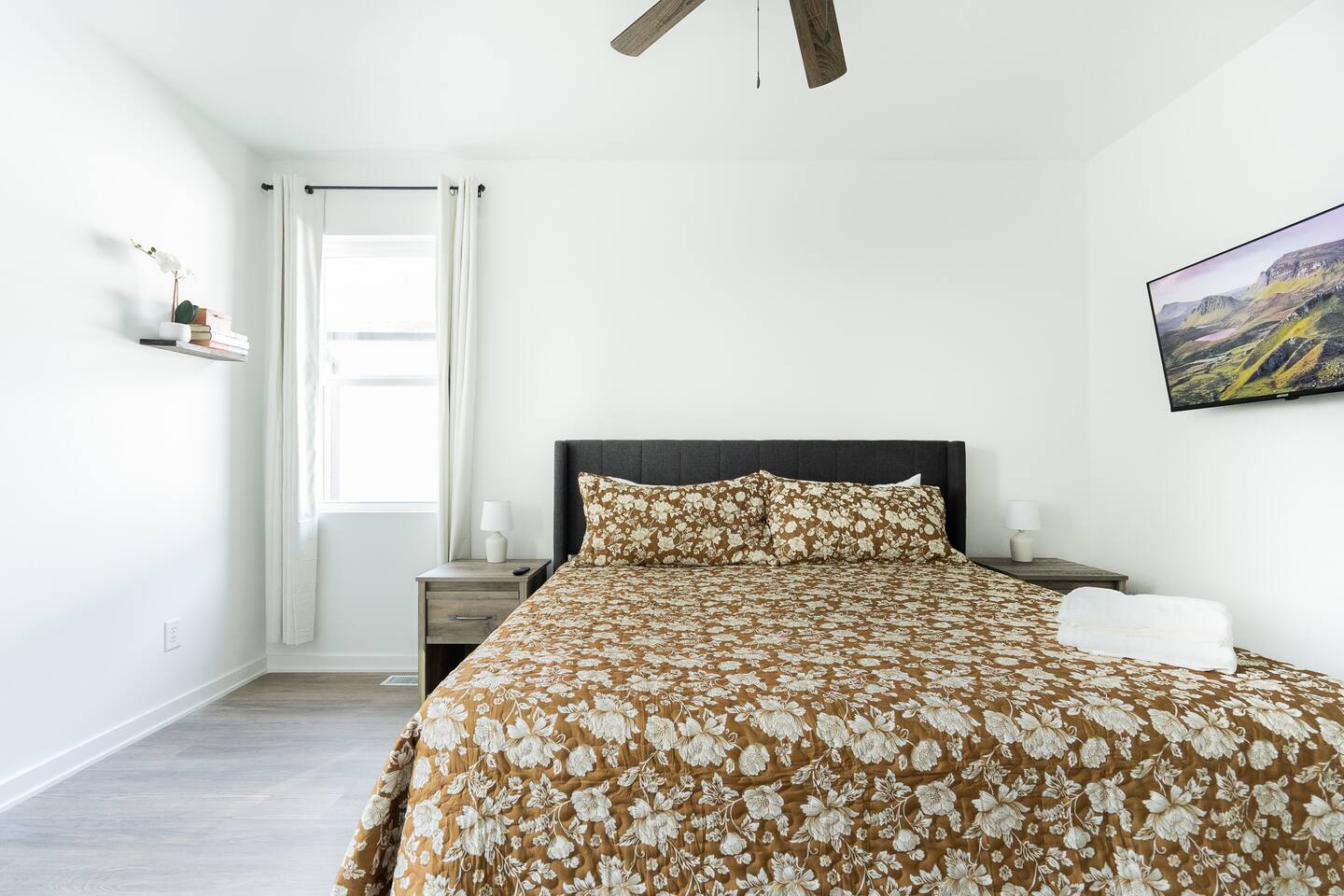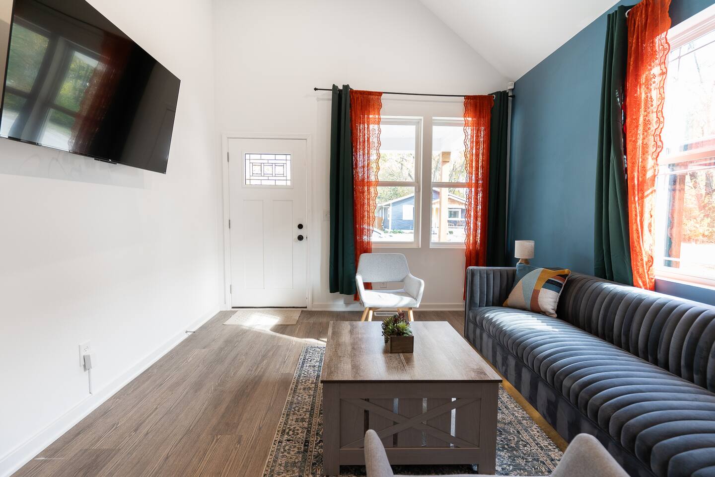 LOCATION: - Directly behind Indiana State Fairgrounds <15 minutes to downtown Indianapolis <20 minutes to Fishers LIVING ROOM: - full size sofa and 2 chairs - Minimalist, modern decor for a peaceful atmosphere - Smart TV (bring your own password) KITCHEN: - High-quality appliances for cooking - Stocked with essential cookware and utensils - Spacious, easy-to-navigate design BEDROOM #1: - sleeps 2 - 2 Twin beds - Smart TV (bring your own password) BEDROOM #2: - sleeps 2 - Queen bed - Smart TV (bring your own password) BEDROOM #3: - sleeps 2 - King bed - Smart TV (bring your own password) BATHROOM #1: - located in hallway, shared with bedroom 1 & bedroom 2 - Modern fixtures with a tub/shower combo - Shampoo, body wash, conditioner - blow dryer BATHROOM #2: - private, attached to bedroom 3 - walk-in shower - high-quality finishes with ample lighting - shampoo, body wash, conditione