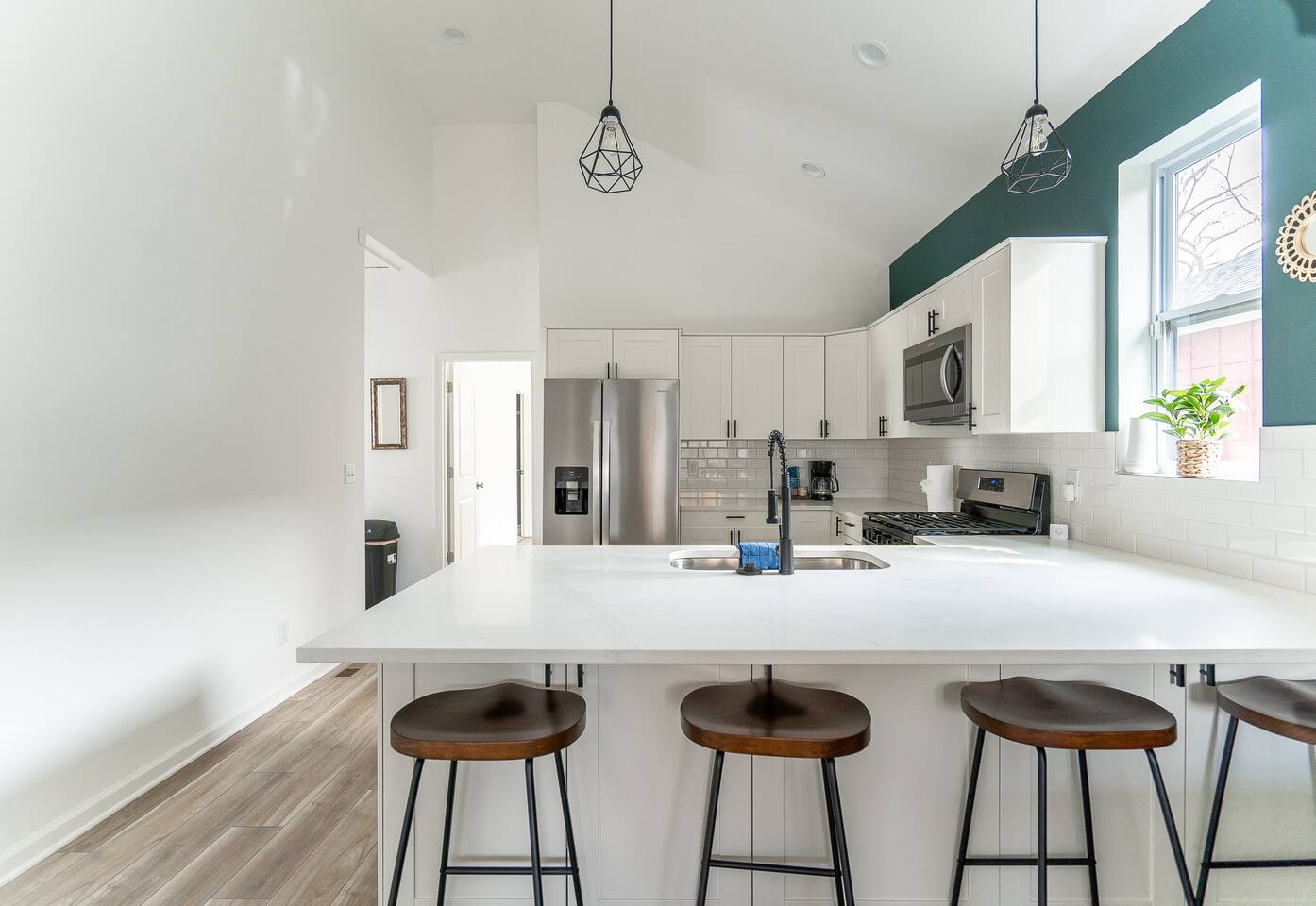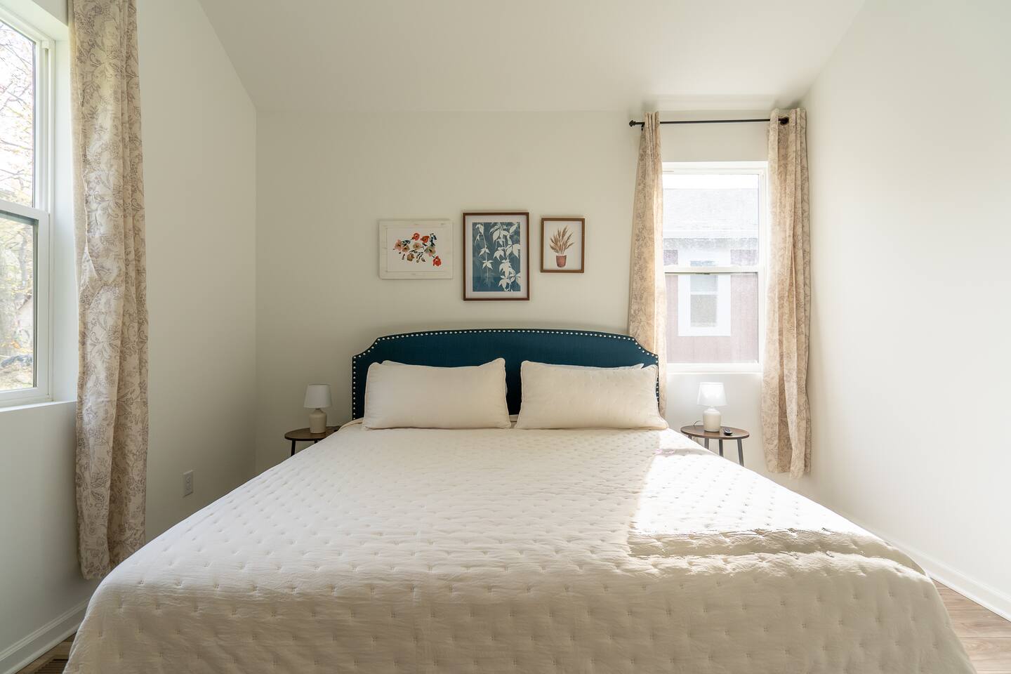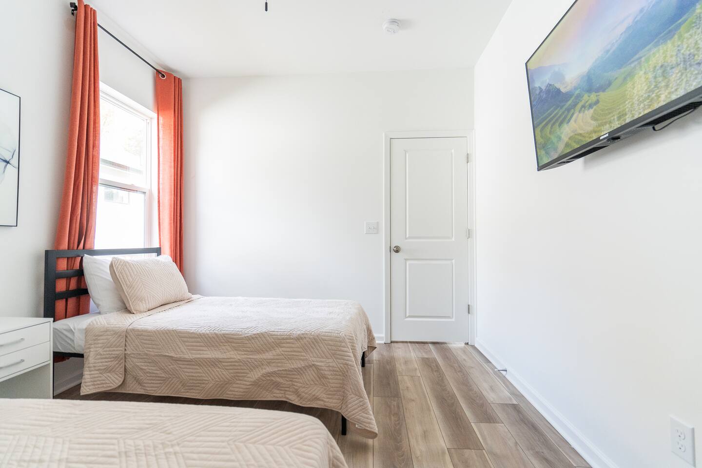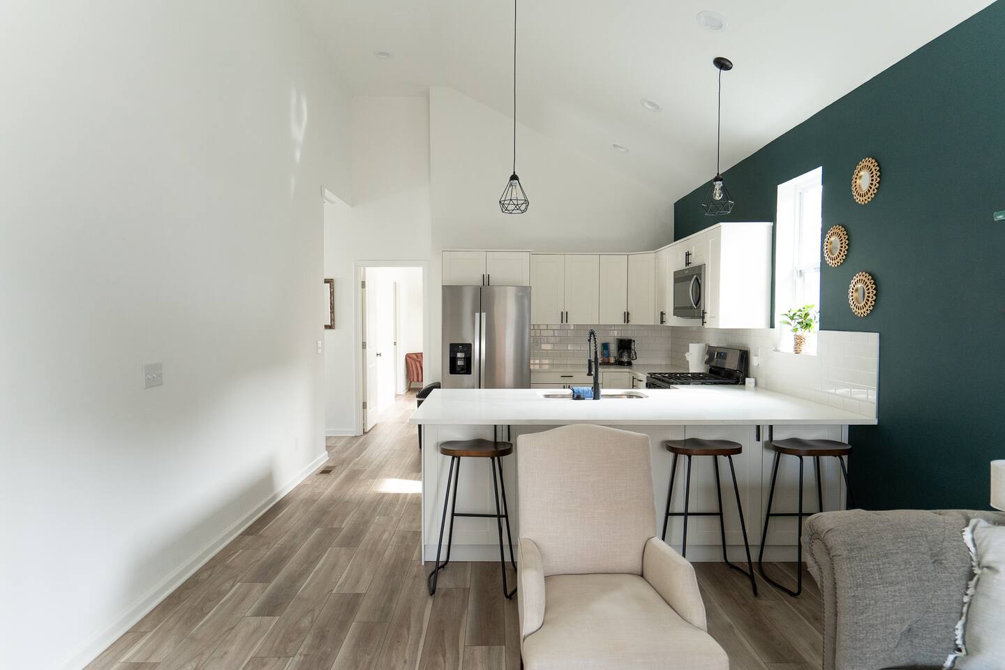 LOCATION: - Directly behind Indiana State Fairgrounds <15 minutes to downtown Indianapolis <20 minutes to Fishers LIVING ROOM: - full size sofa and 2 chairs - Minimalist, modern decor for a peaceful atmosphere - Smart TV (bring your own password) KITCHEN: - High-quality appliances for cooking - Stocked with essential cookware and utensils - Spacious, easy-to-navigate design BEDROOM #1: - sleeps 2 - 2 Twin beds - Smart TV (bring your own password) BEDROOM #2: - sleeps 2 - Queen bed - Smart TV (bring your own password) BEDROOM #3: - sleeps 2 - King bed - Smart TV (bring your own password) BATHROOM #1: - located in hallway, shared with bedroom 1 & bedroom 2 - Modern fixtures with a tub/shower combo - Shampoo, body wash, conditioner - blow dryer BATHROOM #2: - private, attached to bedroom 3 - walk-in shower - high-quality finishes with ample lighting - shampoo, body wash, conditioner