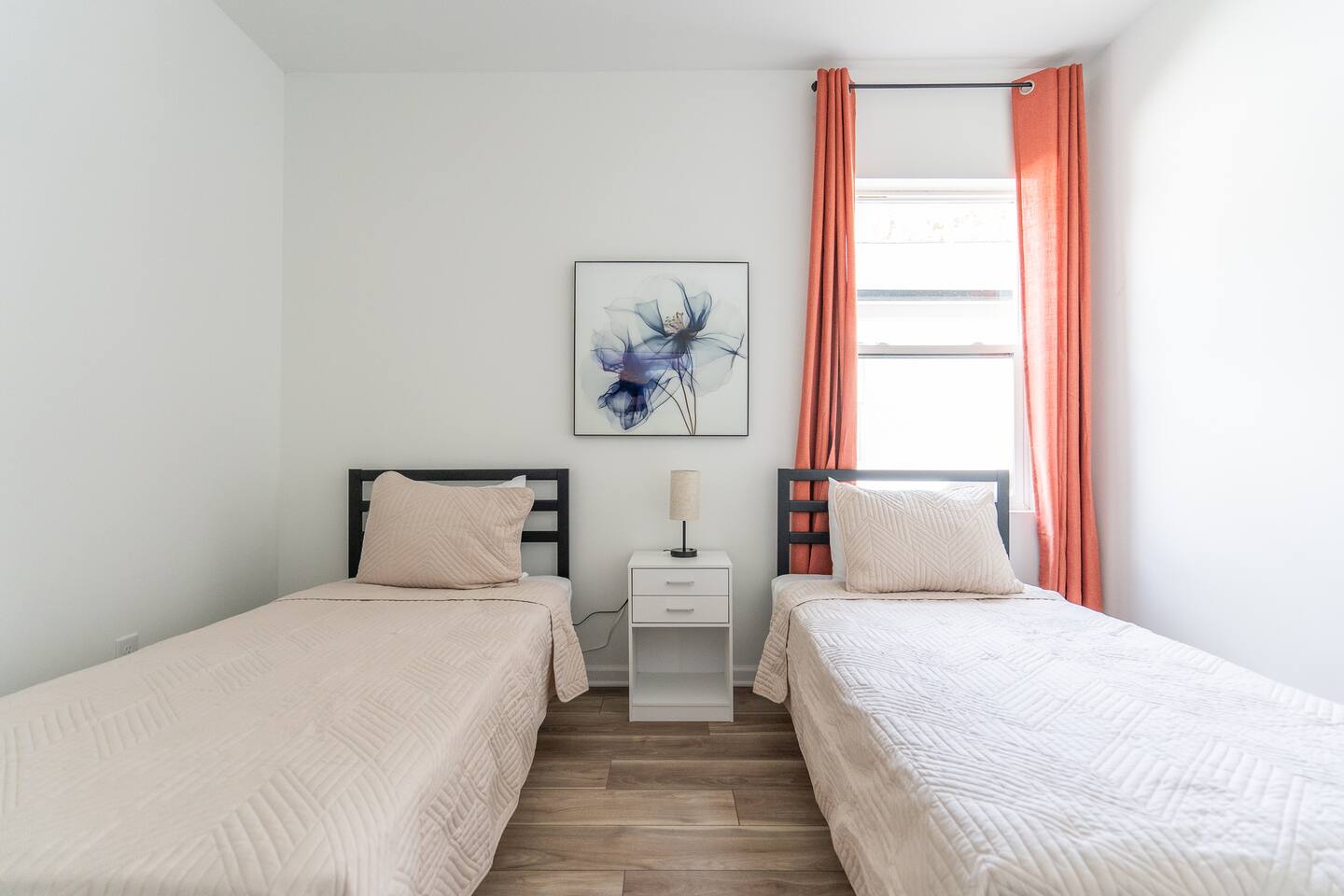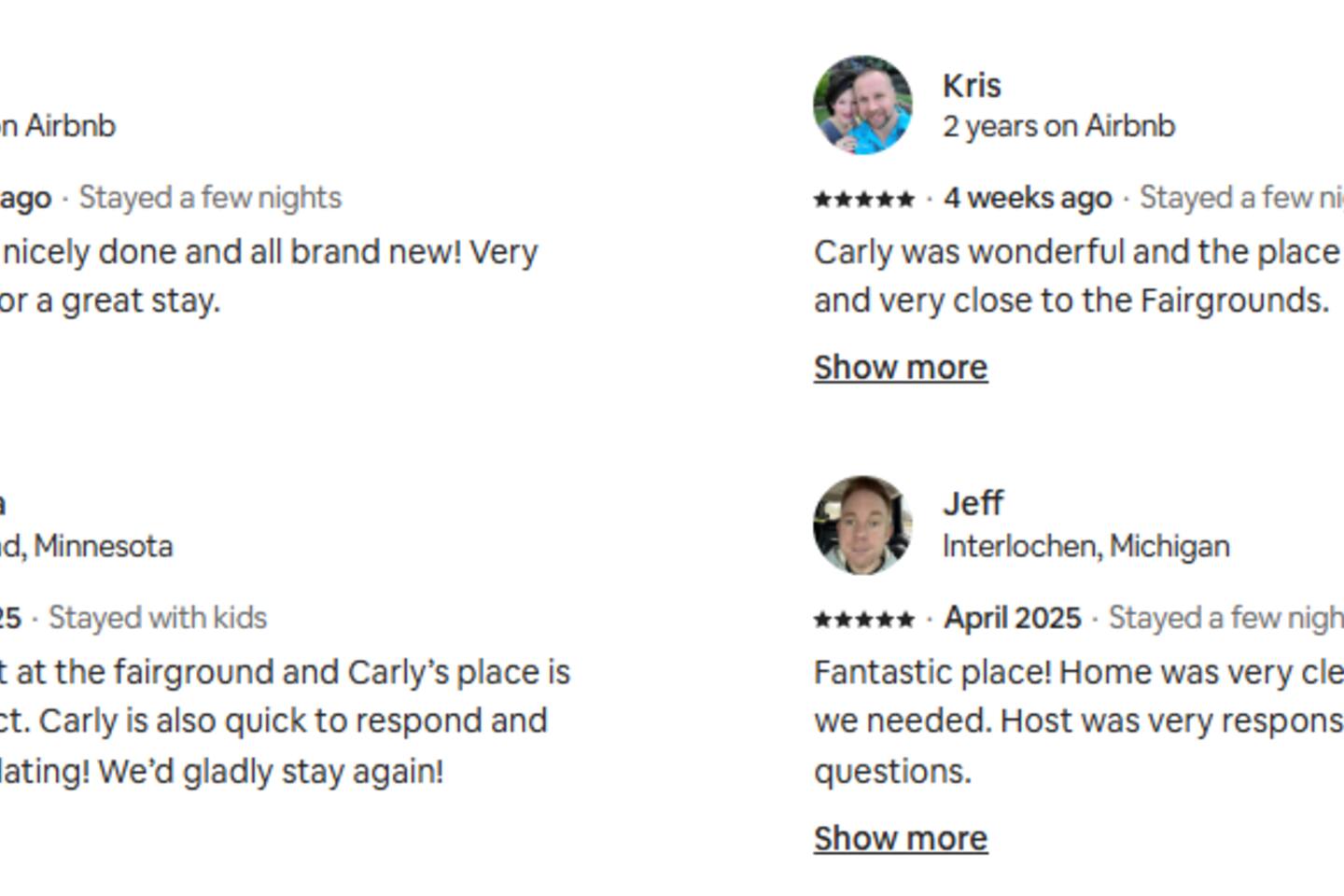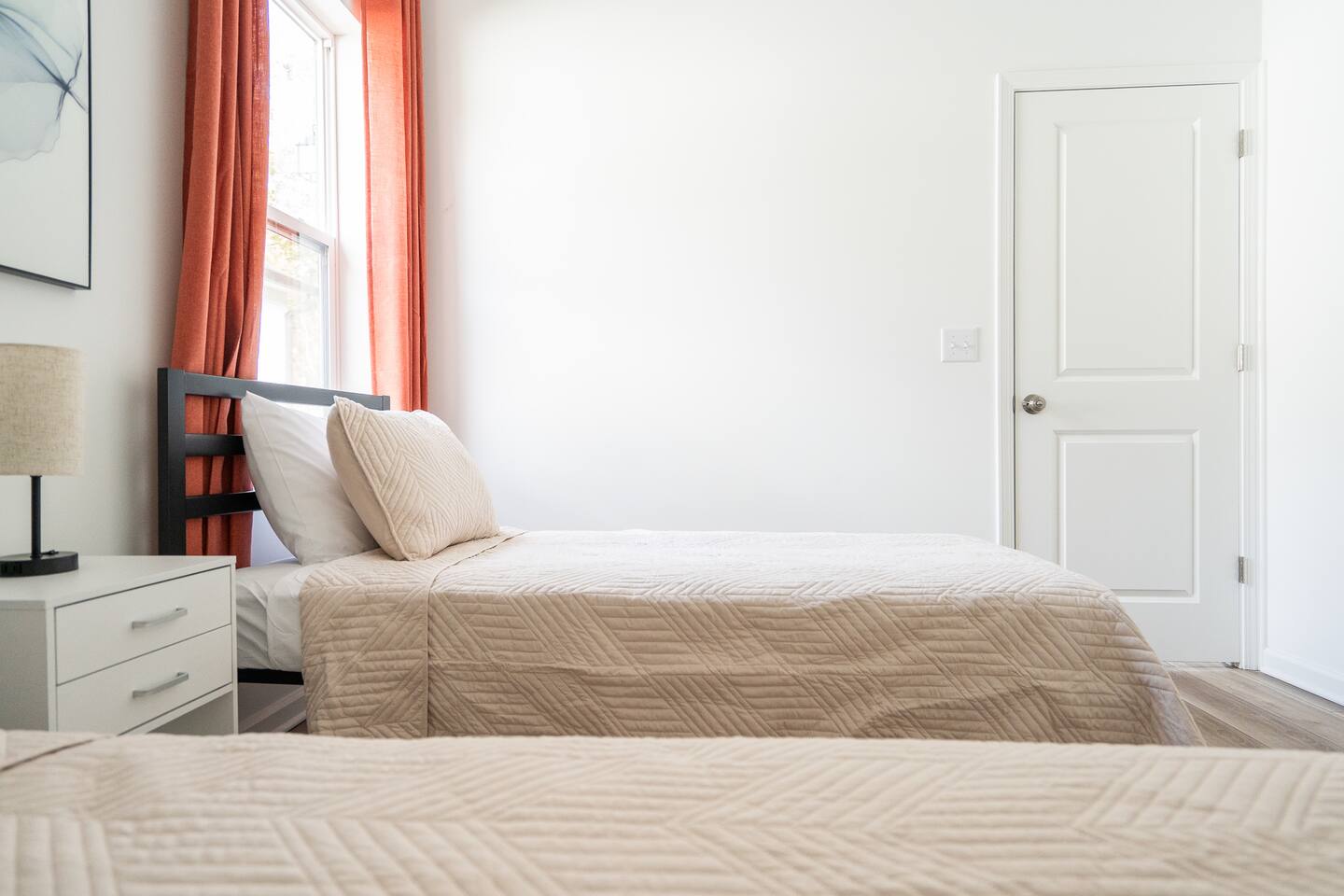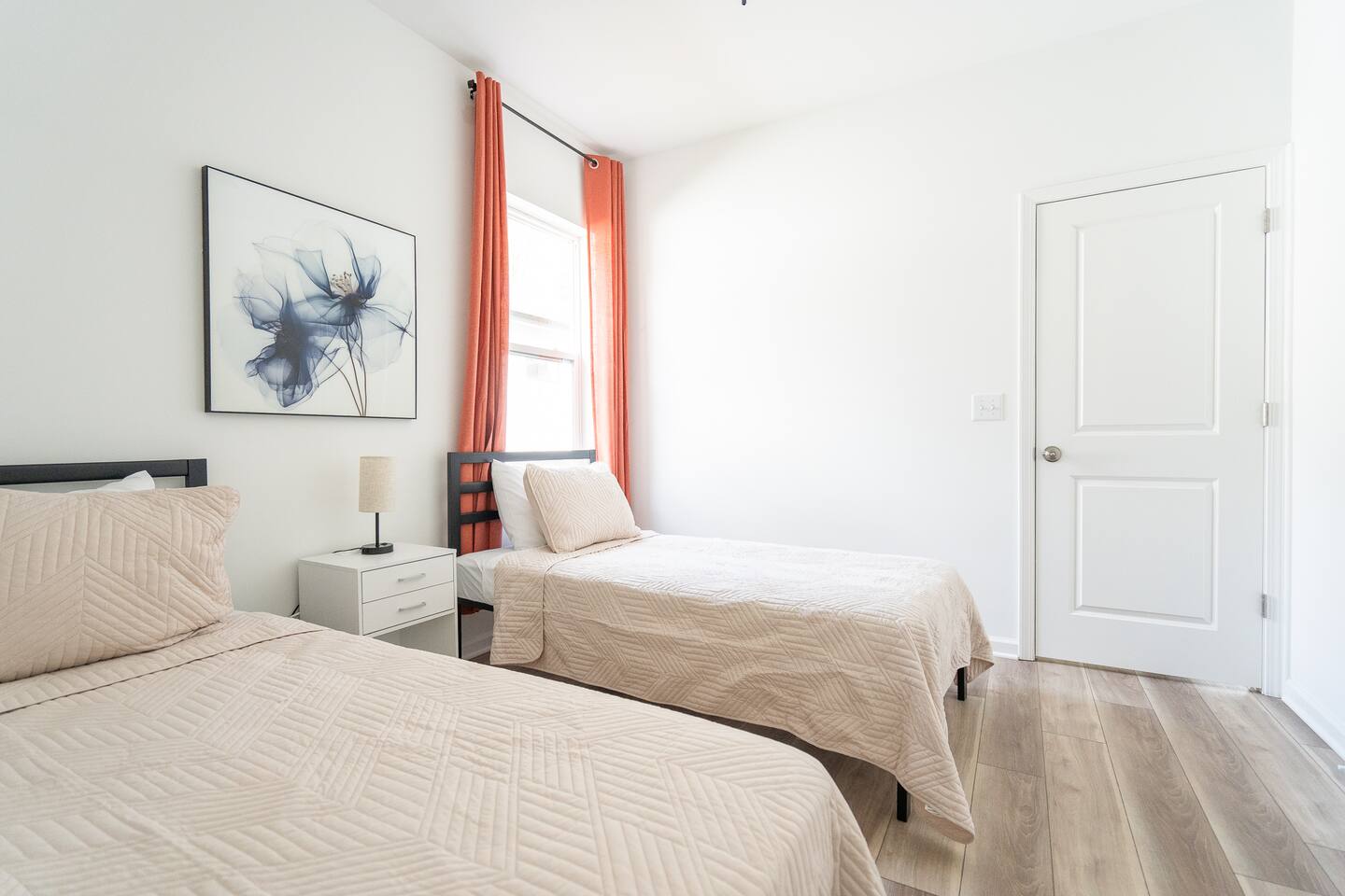 LOCATION: - Directly behind Indiana State Fairgrounds <15 minutes to downtown Indianapolis <20 minutes to Fishers LIVING ROOM: - full size sofa and 2 chairs - Minimalist, modern decor for a peaceful atmosphere - Smart TV (bring your own password) KITCHEN: - High-quality appliances for cooking - Stocked with essential cookware and utensils - Spacious, easy-to-navigate design BEDROOM #1: - sleeps 2 - 2 Twin beds - Smart TV (bring your own password) BEDROOM #2: - sleeps 2 - Queen bed - Smart TV (bring your own password) BEDROOM #3: - sleeps 2 - King bed - Smart TV (bring your own password) BATHROOM #1: - located in hallway, shared with bedroom 1 & bedroom 2 - Modern fixtures with a tub/shower combo - Shampoo, body wash, conditioner - blow dryer BATHROOM #2: - private, attached to bedroom 3 - walk-in shower - high-quality finishes with ample lighting - shampoo, body wash, conditioner