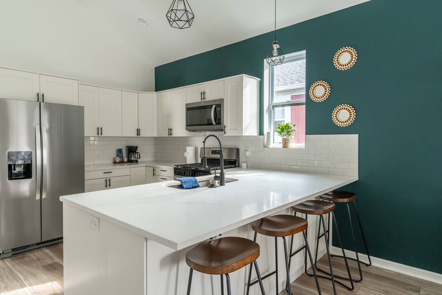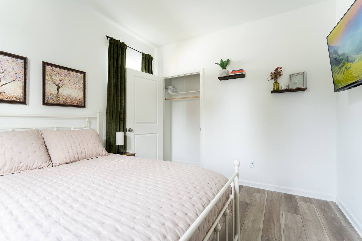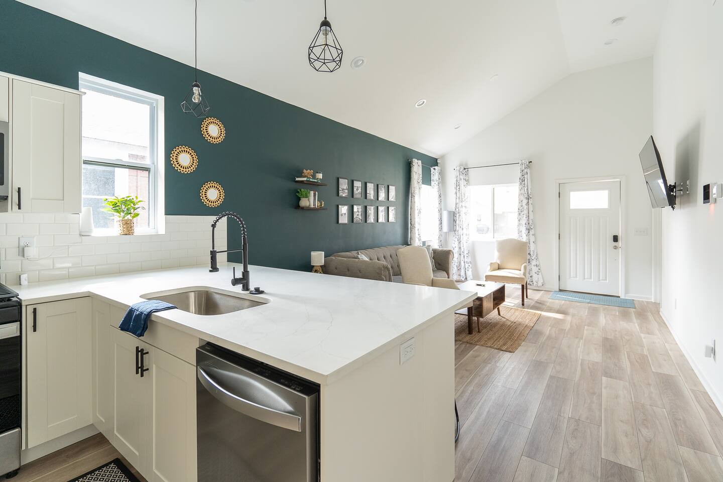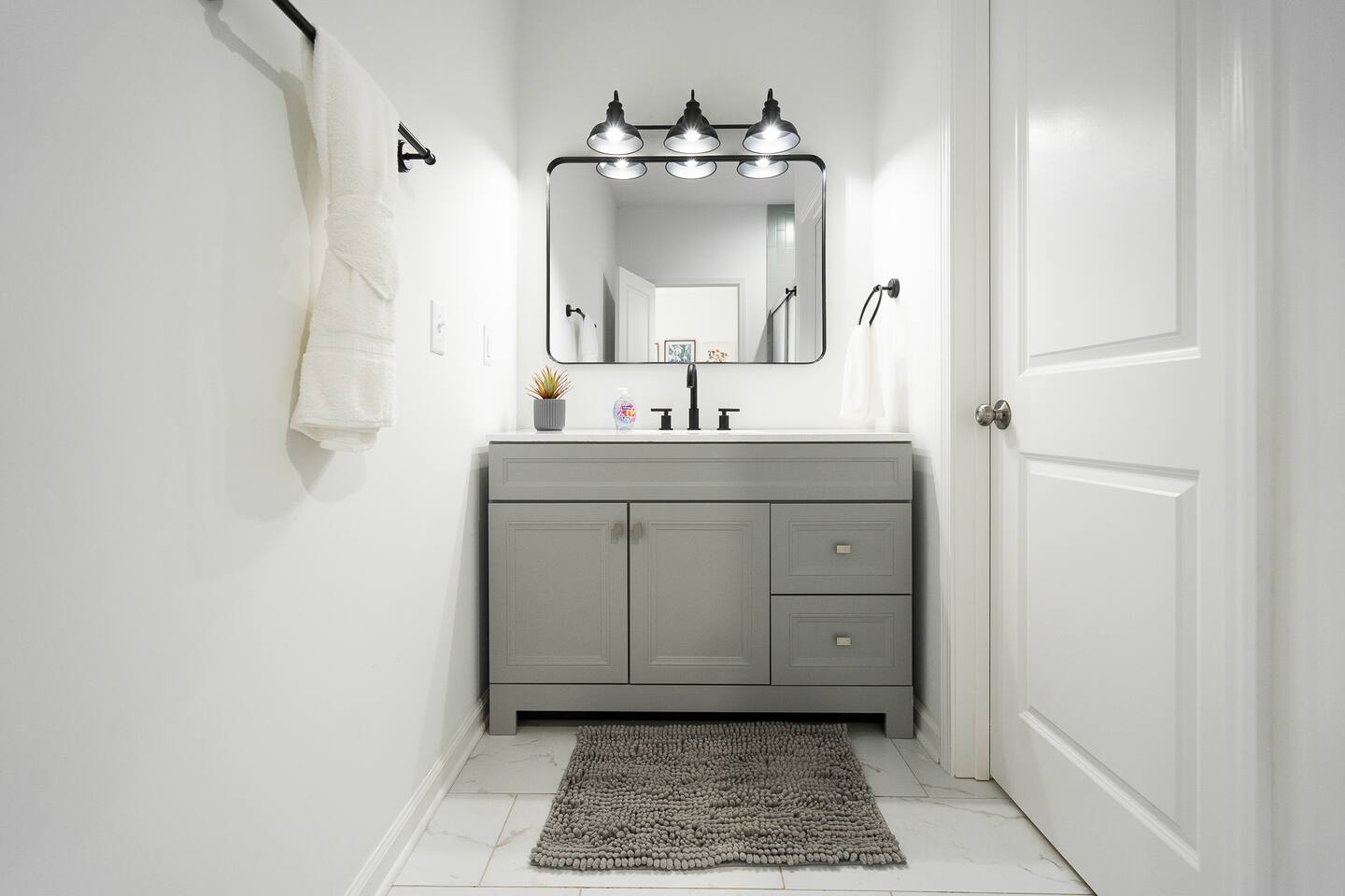 LOCATION: - Directly behind Indiana State Fairgrounds <15 minutes to downtown Indianapolis <20 minutes to Fishers LIVING ROOM: - full size sofa and 2 chairs - Minimalist, modern decor for a peaceful atmosphere - Smart TV (bring your own password) KITCHEN: - High-quality appliances for cooking - Stocked with essential cookware and utensils - Spacious, easy-to-navigate design BEDROOM #1: - sleeps 2 - 2 Twin beds - Smart TV (bring your own password) BEDROOM #2: - sleeps 2 - Queen bed - Smart TV (bring your own password) BEDROOM #3: - sleeps 2 - King bed - Smart TV (bring your own password) BATHROOM #1: - located in hallway, shared with bedroom 1 & bedroom 2 - Modern fixtures with a tub/shower combo - Shampoo, body wash, conditioner - blow dryer BATHROOM #2: - private, attached to bedroom 3 - walk-in shower - high-quality finishes with ample lighting - shampoo, body wash, conditioner