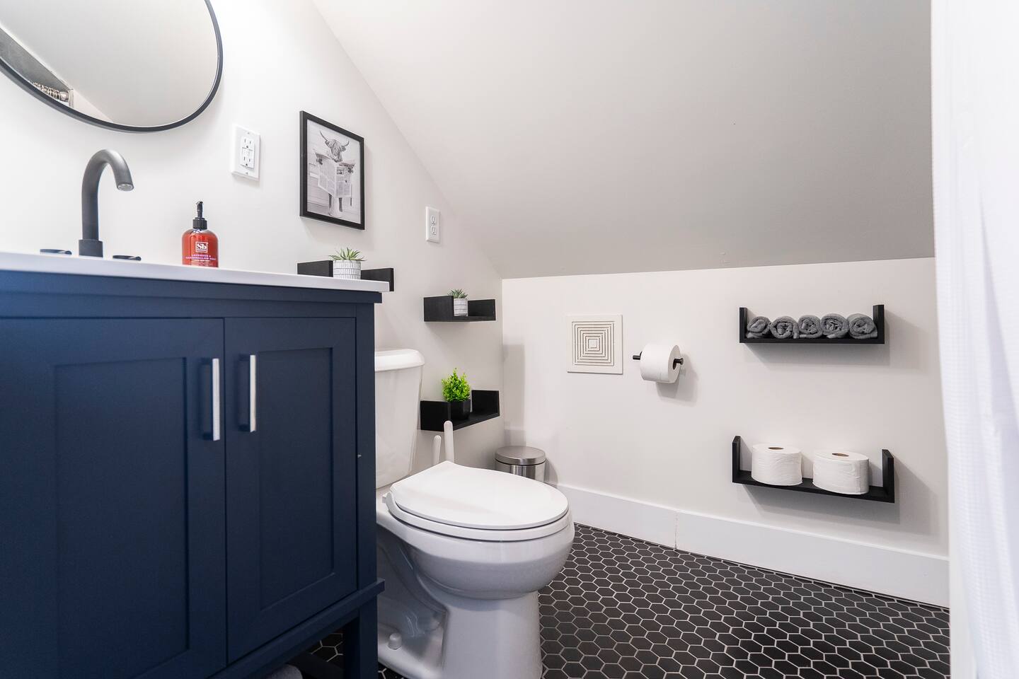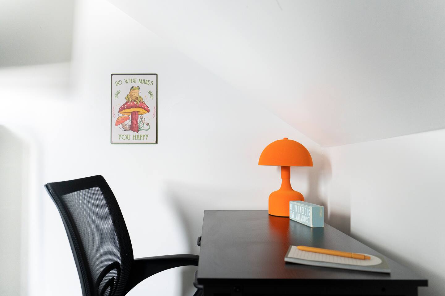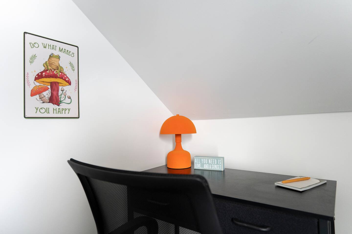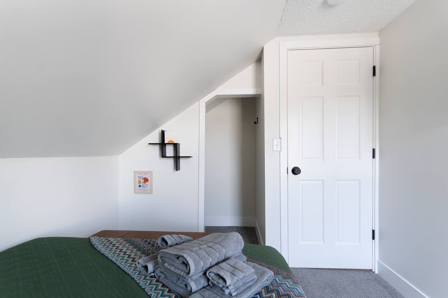 This is private bedroom is on the 2nd floor in a shared home with 3 other guests. Room Features: - Luxurious queen bed with blackout curtains for a restful night's sleep - Smart TV for entertainment at your fingertips - Desk, closet, dresser, mini fridge, and fans for ultimate convenience - Space heater to keep you cozy - Comfortable couch to relax and unwind Shared Spaces: - Modern, shared bathroom designed with style and functionality - Property equipped with a security system for peace of mind Extras to Make You Feel at Home: - Two rolls of toilet paper - One roll of paper towels - Bath linens and an extra set of sheets