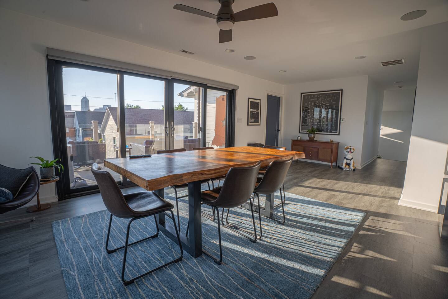 Welcome to your ultimate Indy escape, thoughtfully designed and stocked with everything you need to relax, entertain, and recharge. This home is full of personal touches and made for memorable group stays. ✨ What You’ll Love: 🛌 Sleeps 12 Beds: - 1 King (sleeps 2) - 2 Queens (sleeps 4) - 2 Twin Murphy beds (easily tucked away when not in use, sleeps 2) ➕ Extra sleeping space: - sleeper sofa (main living room, sleeps 1) - large couch (2nd floor living room, sleeps 1) - queen air mattress (located in one of the queen bedroom closets, sleeps 4) 🔊 Vibes & Entertainment - Whole-home Sonos sound system (inside and out!) - Vinyl lounge with 100s of records (collection is of owner attended concerts) - 7 Smart TVs - Nintendo Switch - PS4 - Tons of board games - Life-size Jenga 💪 Play & Unwind - Light workout gear (mat, weights, roller) - Private hot tub - Side yard with garden & outdoor dining area 🍳 Chef’s Kitchen Highlights - Main kitchen + 3rd level entertaining area - Gas stove, wine cooler, ice maker - Dishwasher, full cookware & gadgets - Coffee, spices, and any food left behind—yours to enjoy 🐾 Pup-Friendly Perks - Fully fenced yard - Two built-in dog crates - Dog beds 🛁 2 full + 2 half bathrooms 🌇 Rooftop deck with downtown views 🔐 Smart tech: electric blinds, security system, smart locks 🚶♀️ Location: Walk to restaurants, bars, coffee, shopping & nightlife.